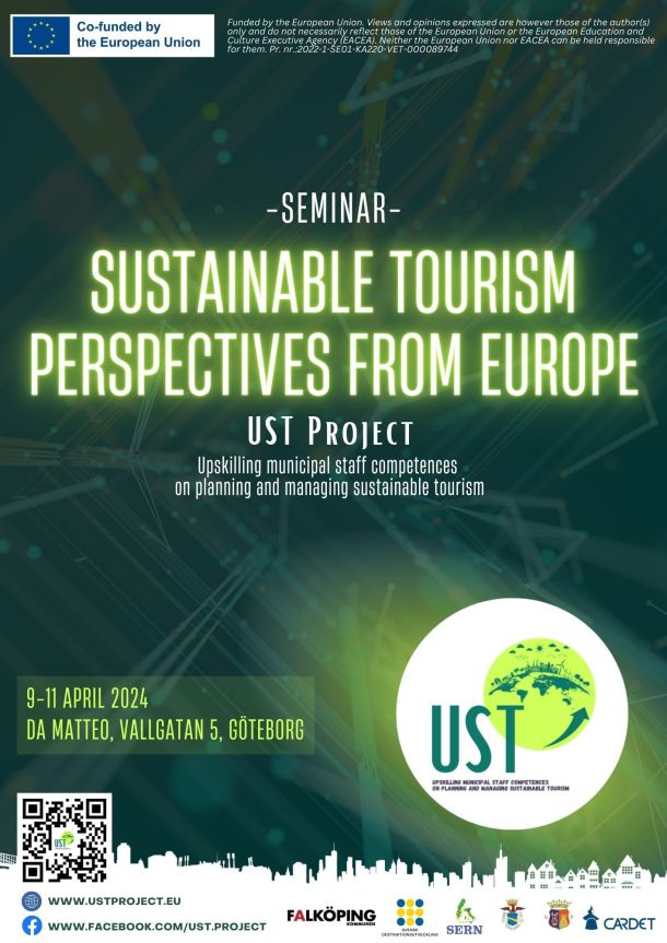 The UST Project seminar, taking place in Gothenburg from April 9 to 11, 2024, convenes stakeholders and experts under the theme “Sustainable Tourism Perspectives from Europe.” The three-day event offers a comprehensive exploration of sustainable tourism practices.