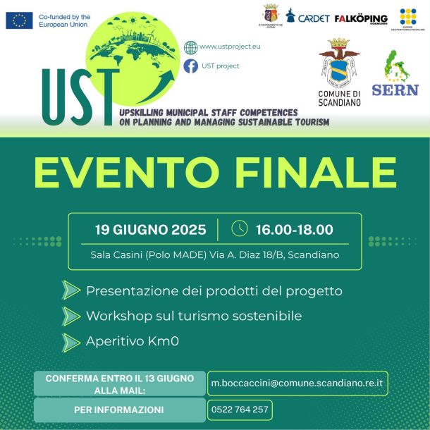 On June 19th, the final event of the Erasmus+ project UST – Upskilling Municipal Staff Competences on Planning and Managing Sustainable Tourism took place in Comune di Scandiano organised by the Italian partners Comune di Scandiano and SERN.
